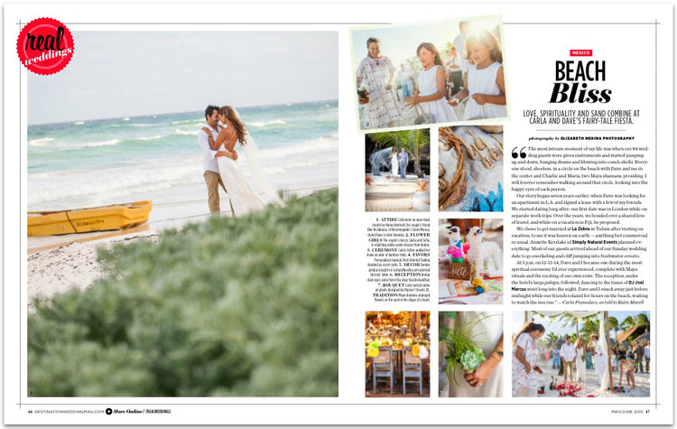 Real wedding featured in 'Destination Weddings Magazine' Best Wedding & Honeymoon Destinations: Carla & Dave. Tulum, Mexico